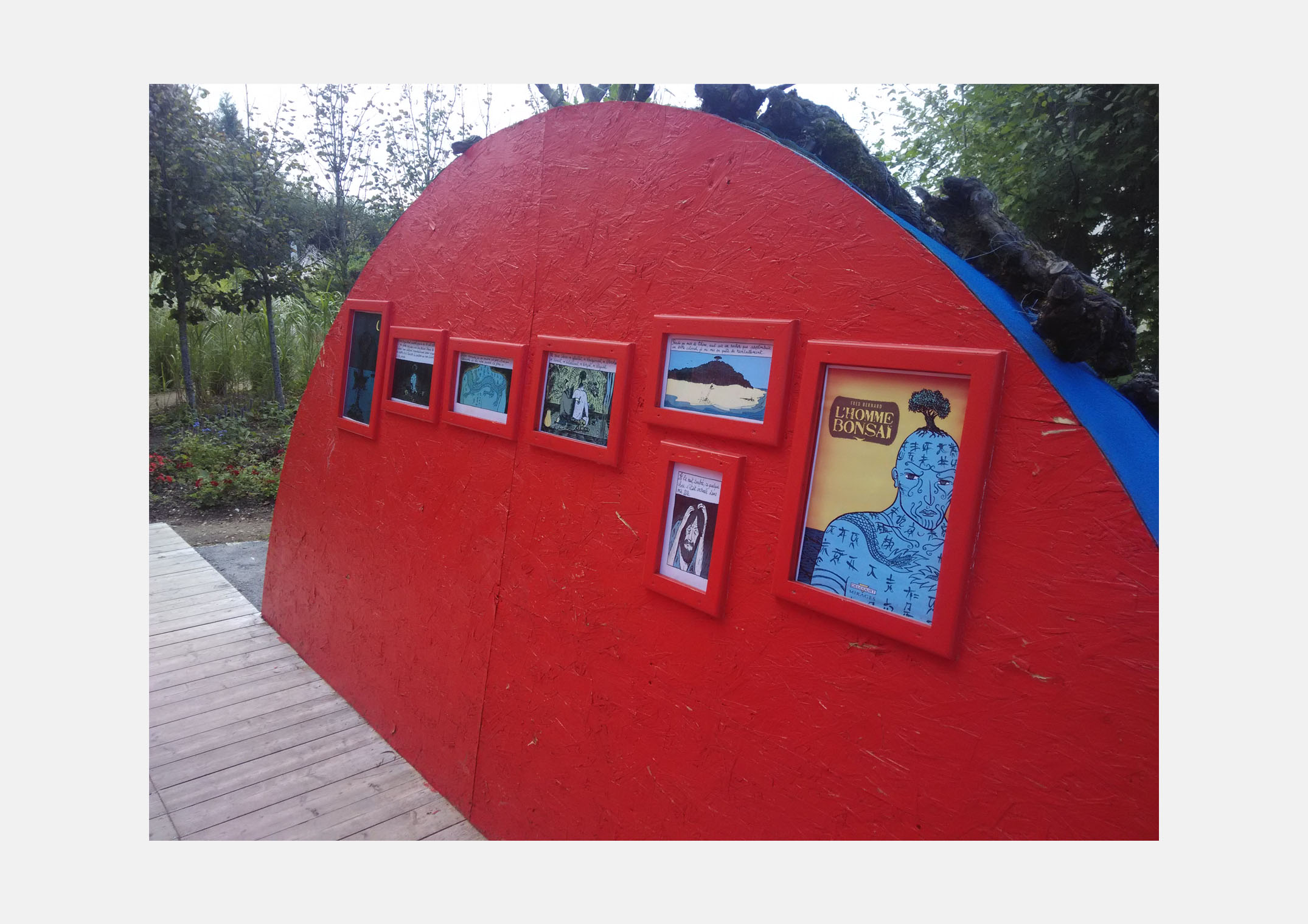 Projet réalisé dans le cadre d'un concours pour le Festival des Jardins à la Saline Royale d'Arc-et-Senans, autour du thème de la bande dessinée. L'homme bonsaï, inspiré de l'œuvre de Fred Bernard, est au cœur de notre création. Le concept met en lumière un arbre qui a poussé sur la tête du personnage, lui conférant une force surhumaine. Cependant, cet arbre puise également toute son essence vitale. Ainsi, pour survivre, le personnage doit entretenir l'arbre, prenant soin de lui comme de sa propre vie.