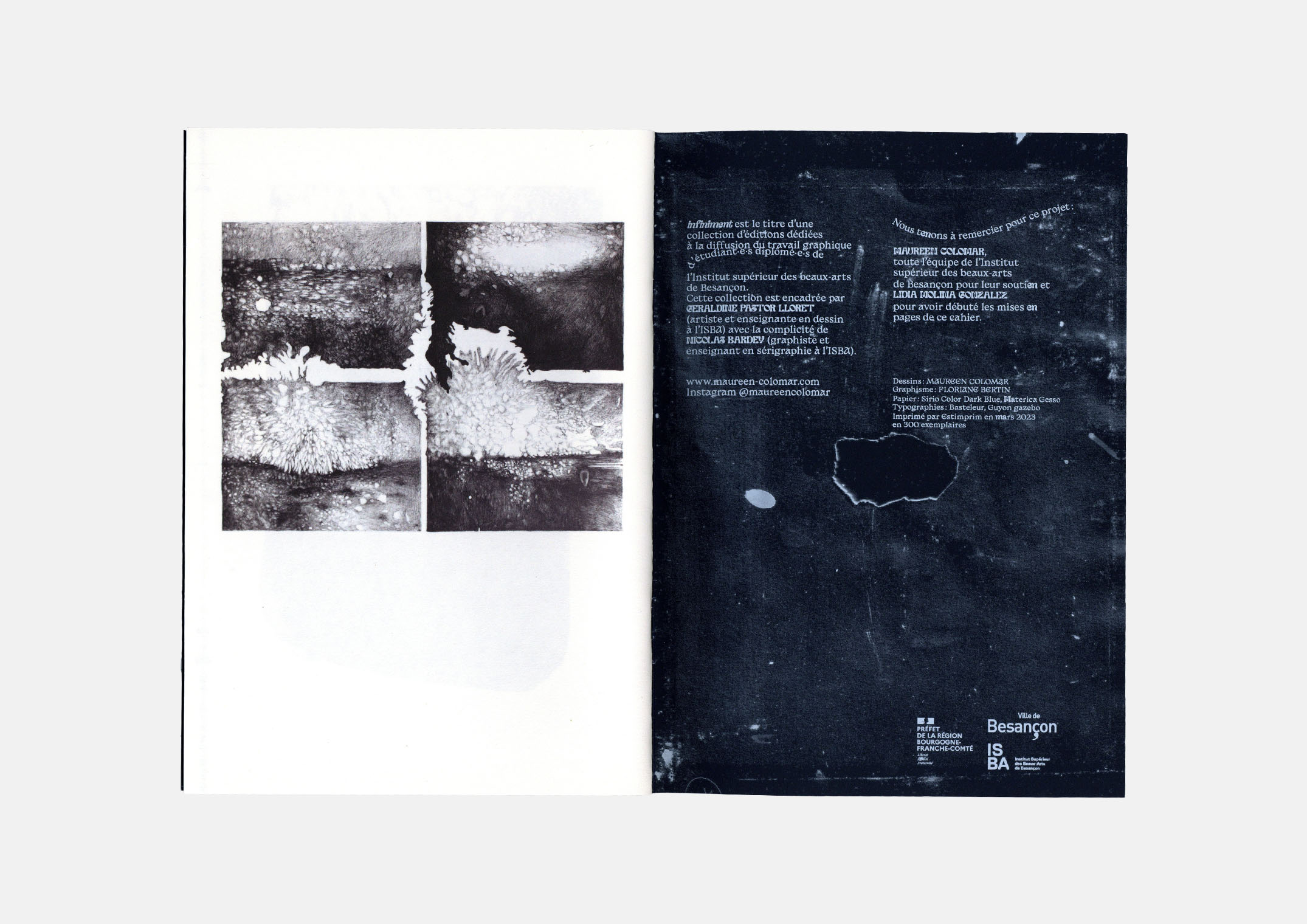 infiniment est le titre d'une collection dédiées à la difusion du travail graphique d'étudiant·e·s diplômé·e·s de l'ISBA.
